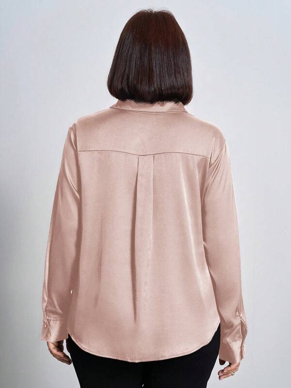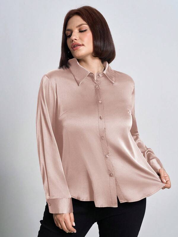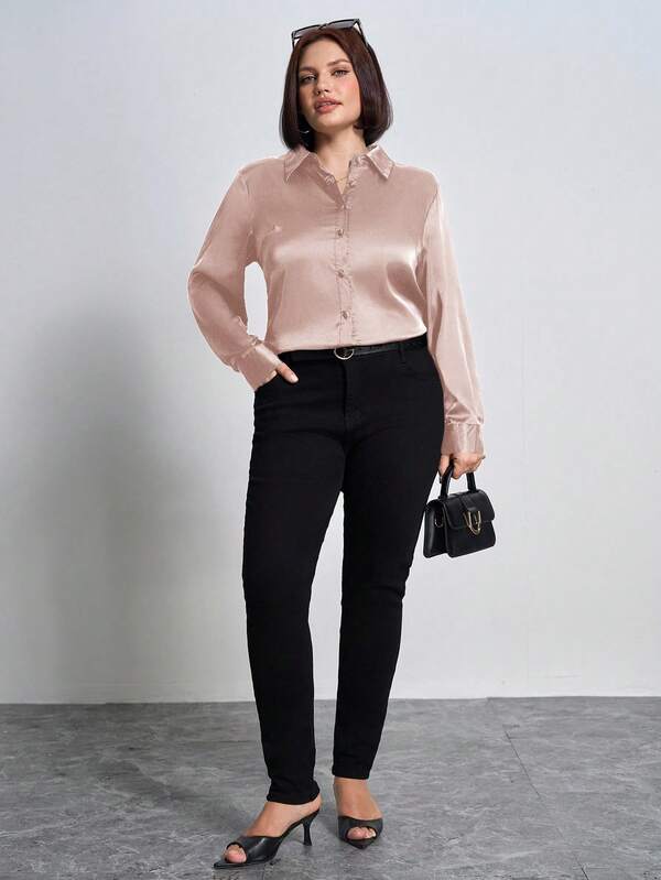 Com modelagem plus size e acabamento refinado, essa camisa valoriza o corpo e combina facilmente com diferentes estilos — do look de trabalho ao visual social ou casual chic.