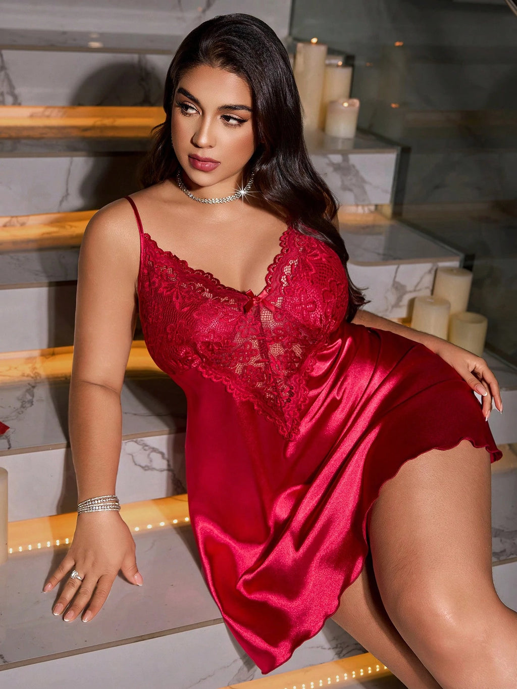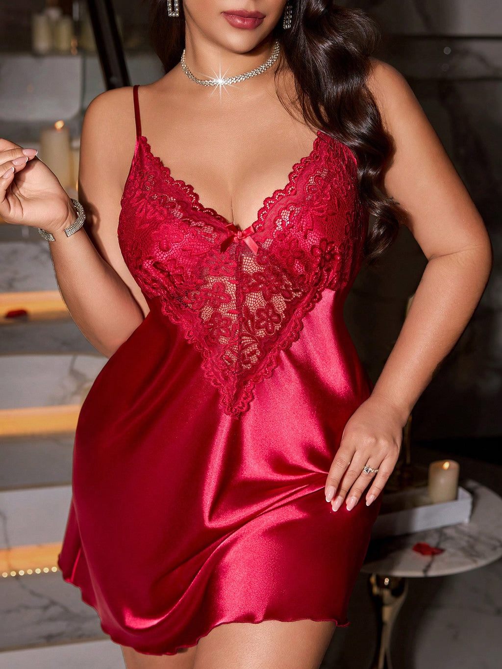 A Camisola Sexy Plus Size em Cetim da Nelima Moda foi criada para valorizar suas curvas com sofisticação e delicadeza. Com acabamento em renda contrastante, recortes estratégicos e detalhe em laço no busto, essa peça une romantismo e sensualidade na medida certa.