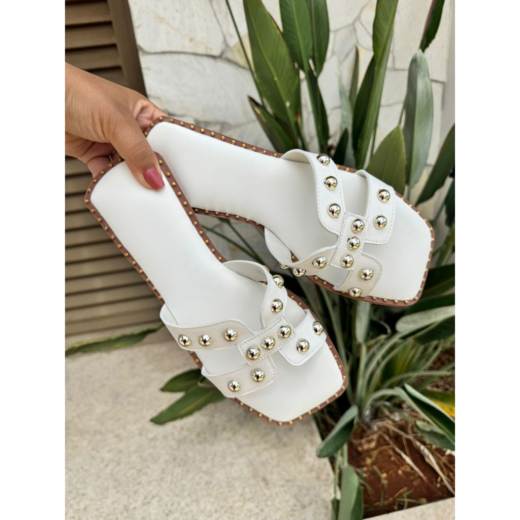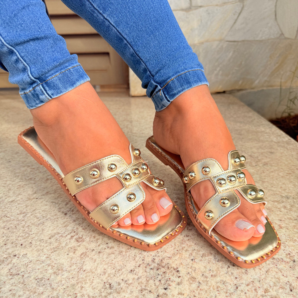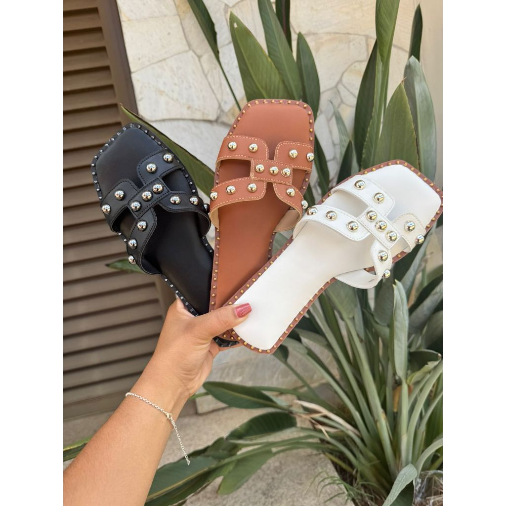 Garanta já a sua Rasteira com Aplicações Metálicas e eleve seus looks com conforto e estilo!