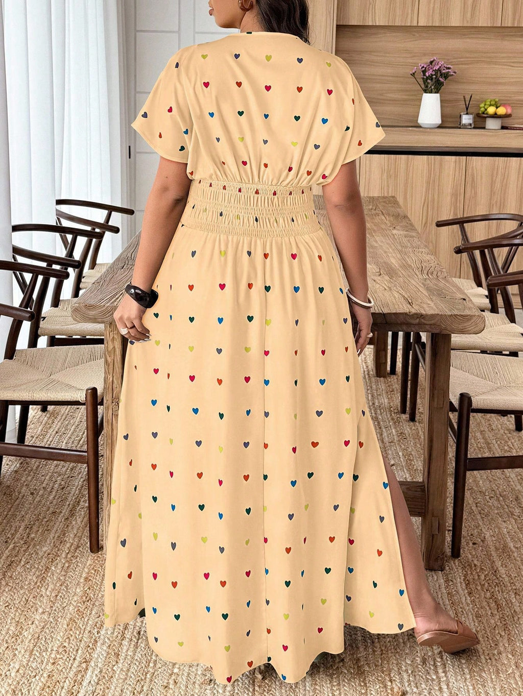 O Vestido Longo Feminino Plus Size Bege com Estampa de Corações da Nelima Moda é a combinação perfeita entre conforto, elegância e delicadeza. O lastex na cintura valoriza as curvas, enquanto a fenda lateral traz movimento e charme ao visual. Ideal para dias ensolarados, almoços ou encontros especiais, seu tecido leve e respirável proporciona bem-estar durante todo o uso. Disponível do G1 ao G4, é o vestido perfeito para mulheres que amam se sentir lindas e confortáveis.