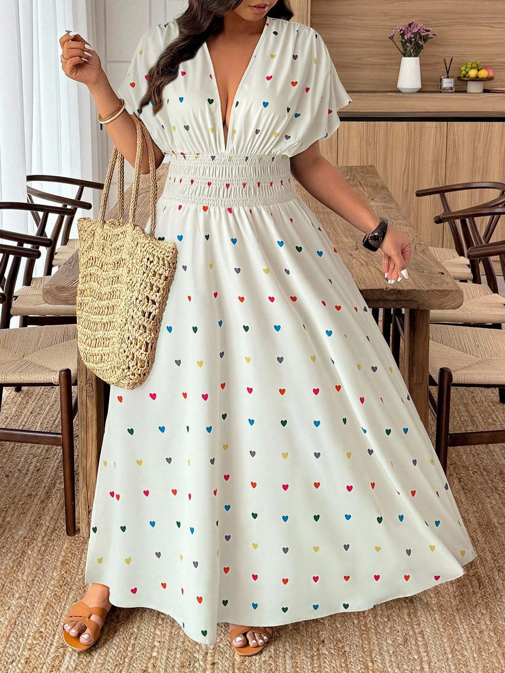 Vestido Longo Feminino Plus Size Branco com Estampa de Corações – Leve e Romântico | Nelima
